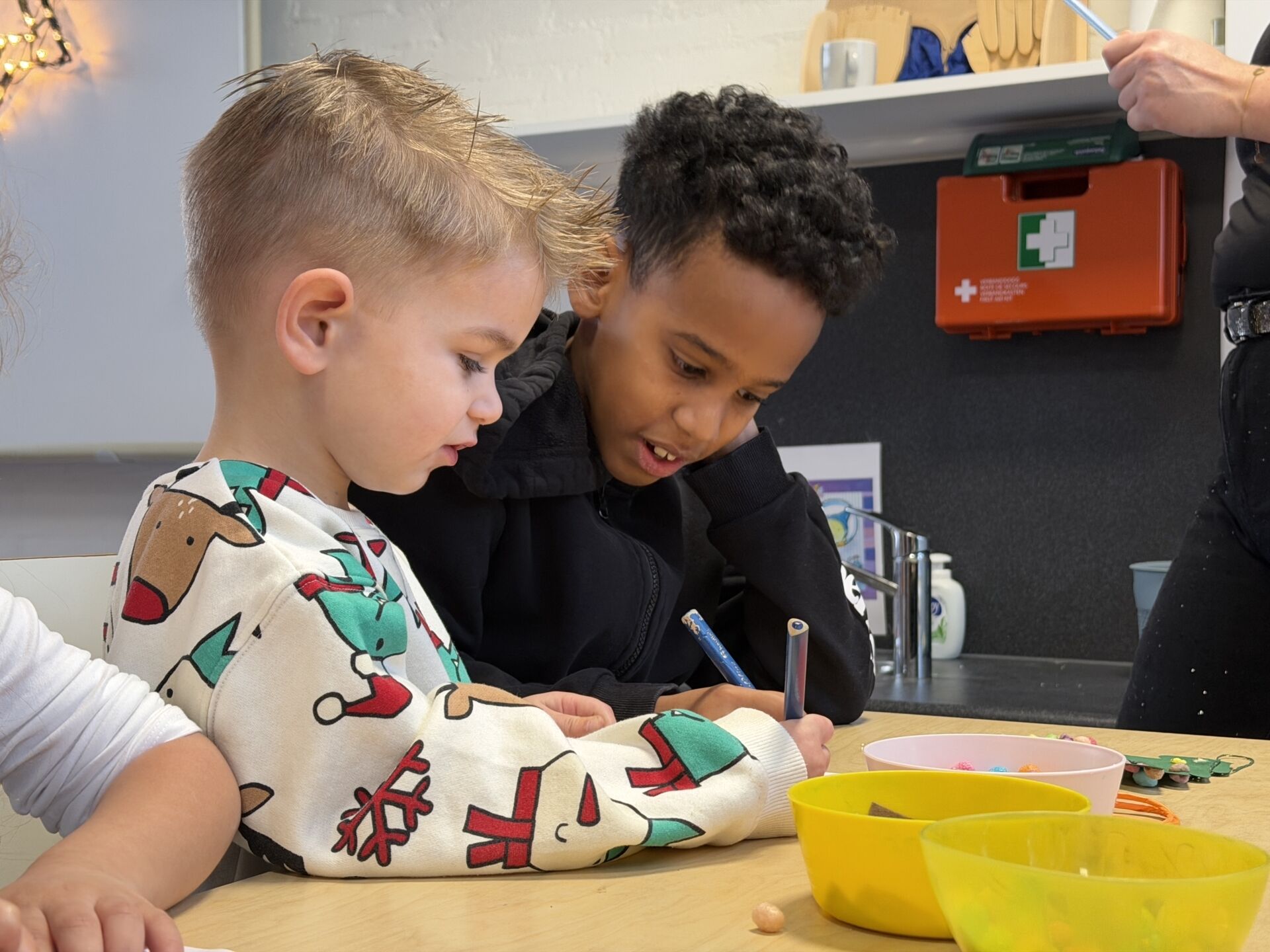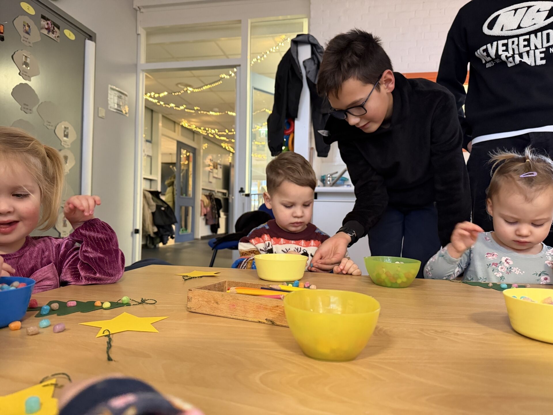 Op school hielpen onze leerlingen de kinderen van Tuimelaar enthousiast bij een gezellige kerstworkshop. Na afloop zijn de kinderen weer samen teruggebracht naar Tuimelaar.