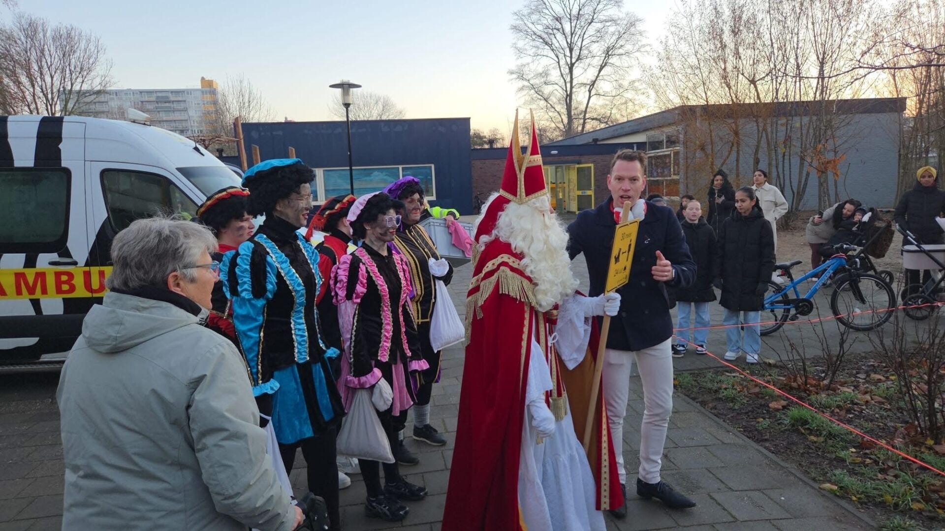 Na een telefoontje van de meester Tom naar dierenambulance Zeeland, werd besloten een zeehondenwachter naar het schoolplein te sturen om het dier te observeren en eventueel te vangen. En raad eens wie er mee kwam? Sint Nicolaas en zijn pieten!