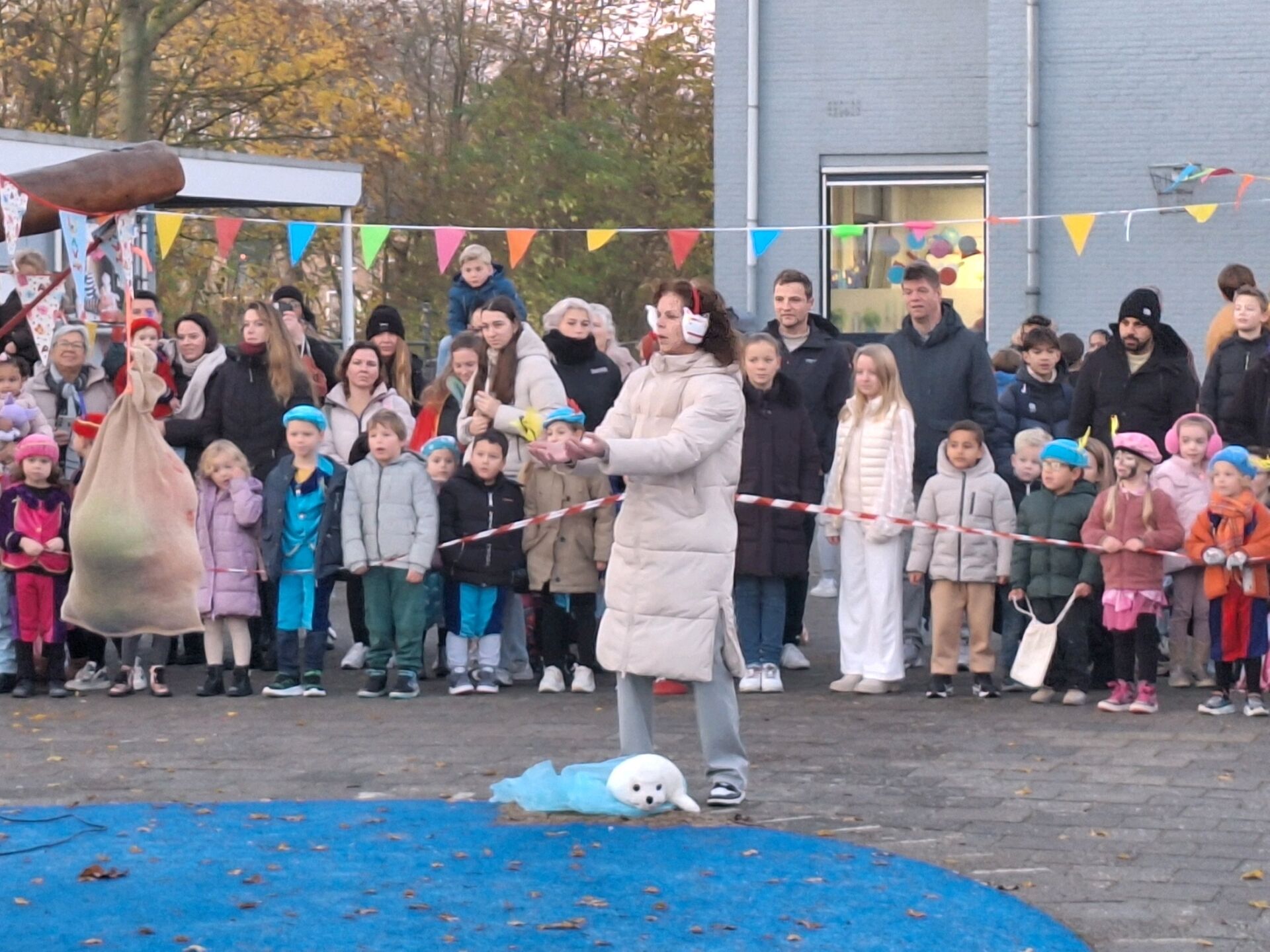 Een zeehond op het schoolplein…Op 5 december, in alle vroegte, lag er plotseling iets vreemds op het schoolplein. De leerlingen zagen het al: het bleek een zeehondje te zijn! Op zich geen probleem, maar het uit de koers geraakte dier blokkeerde de boot van de Pieten. En bovendien was Sinterklaas ook nergens te bekennen…